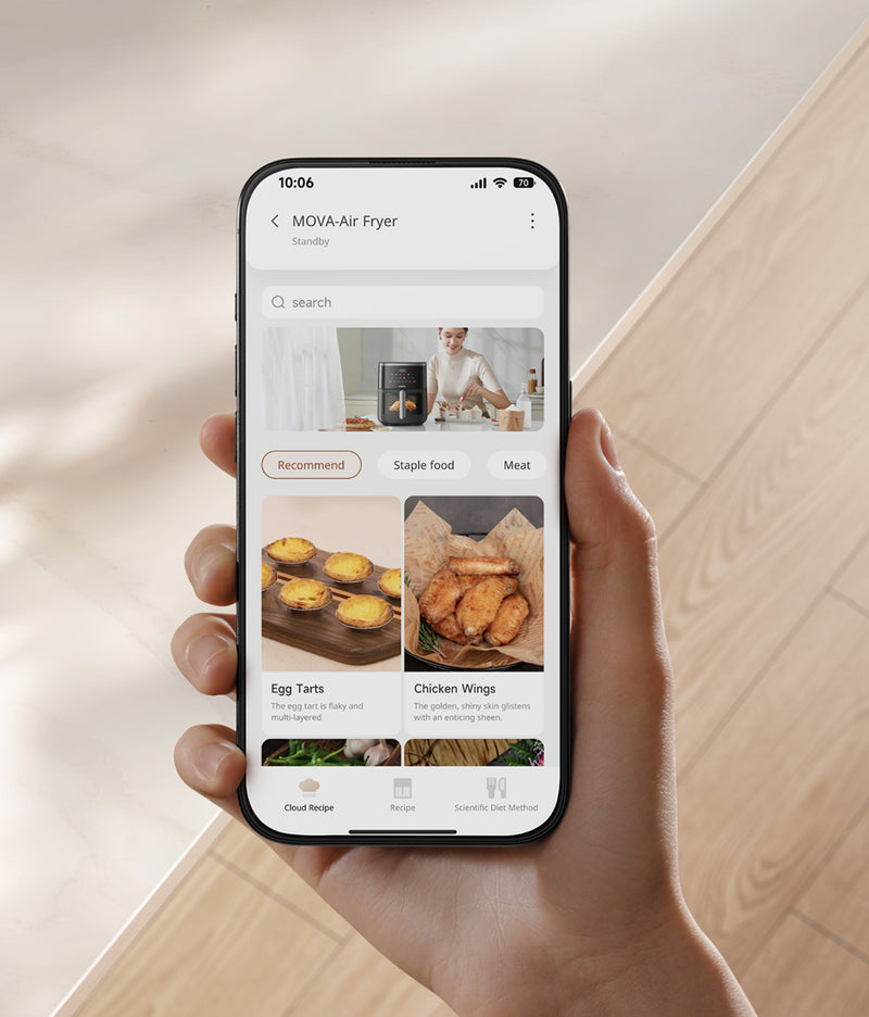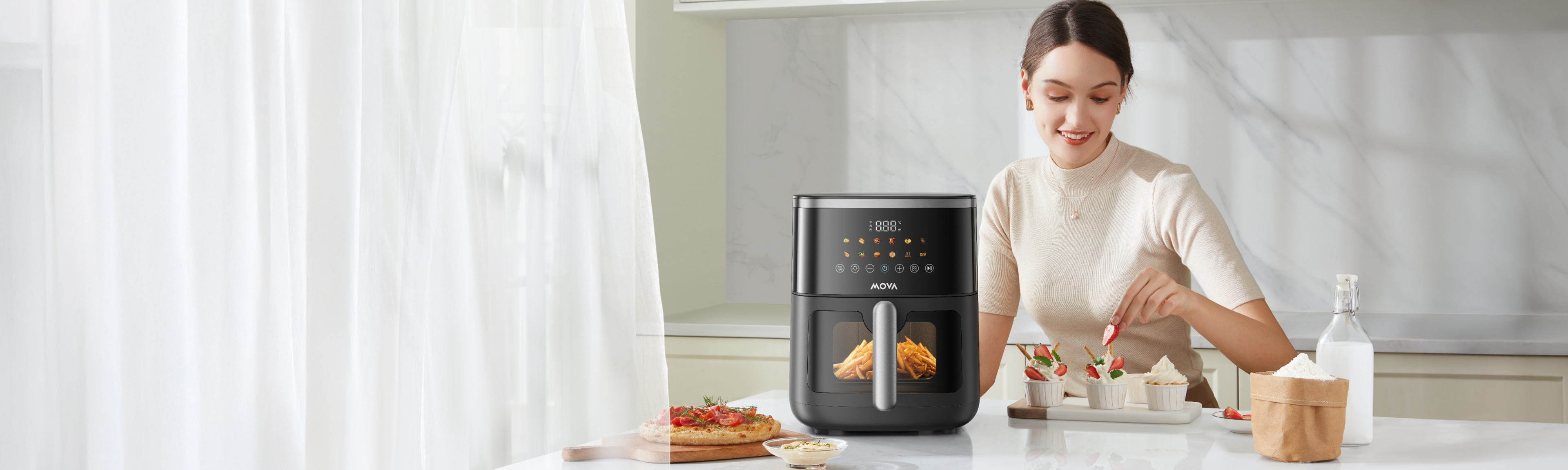 Pasitelkusi pažangią DI technologiją, ji atpažįsta produktus ir parenka kepimo režimus, todėl patiekalų nereikia apversti rankomis. Idealiai tinka užimtiems žmonėms, nes taupo laiką, užtikrina tolygų kaitinimą ir visada geresnį skonį bei tekstūrą.