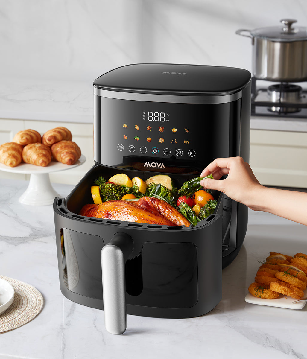 6 litrų talpos krepšelyje galima pagaminti 3–4 porcijas. Galima pagaminti didelius maisto produktus, pavyzdžiui, visą vištą. Jis puikiai tinka šeimai, susibūrimams ir maistui gaminti dideliais kiekiais, tuo pačiu išlaikyti tvarką ir švarą virtuvėje.
