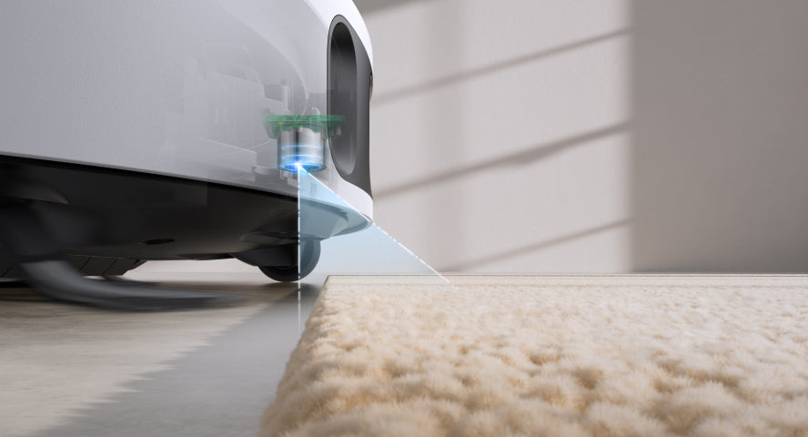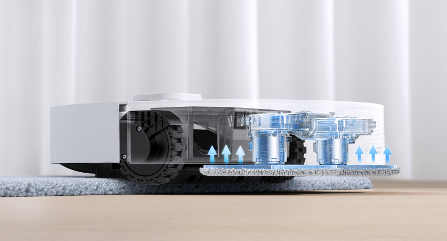 *10,5 mm mopo pakėlimas: Roboto dulkių siurblio aukščio skirtumas yra 10,5 mm prieš ir po mopo pakėlimo. Kilimams, kurių plauko ilgis viršija 3 mm, rekomenduojame nustatyti, kad robotas valymo programėlėje (tik išmanusis kilimų valymo režimas) išvengtų vidutinio ir aukšto plauko kilimų ir taip apsaugotų juos nuo sudrėkimo. Dvigubas kilimų valymas: Galimas tik intensyvaus kilimų valymo režime.