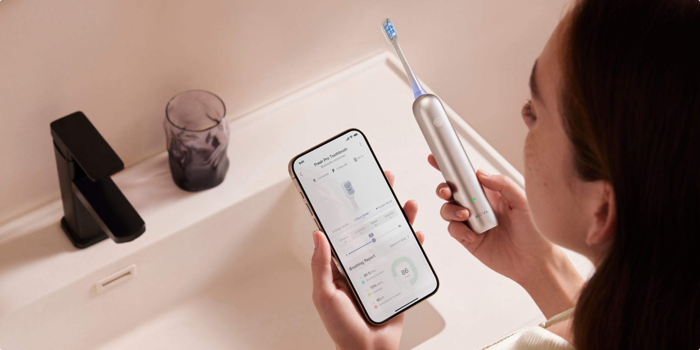 - Patobulinta burnos higiena su MOVAhome programėle (tik Fresh Pro)