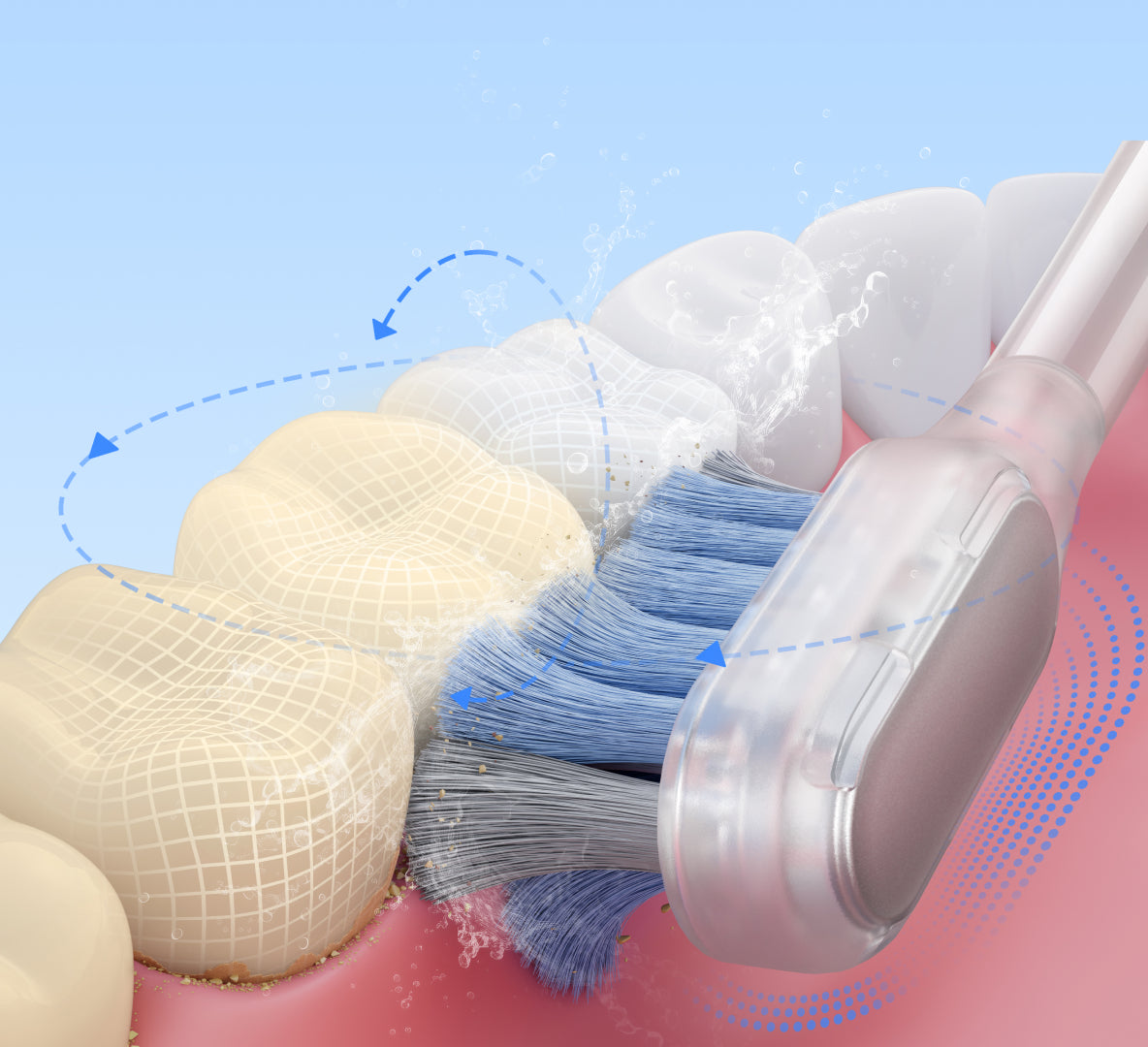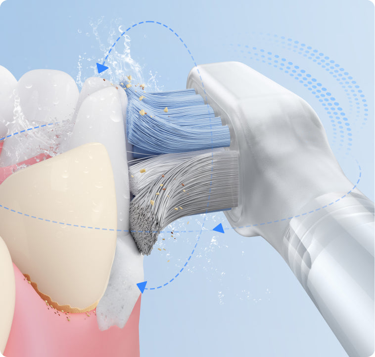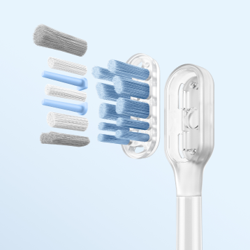Patvirtinta FDA*, jautri šepetėlio galvutė švelniai valo palei dantenų liniją jų nepažeisdama. Šie ypač minkšti 0,01 mm* šereliai užtikrina saugią ir veiksmingą jautrių dantenų priežiūrą, sklandžiai pašalindami apnašas iš siaurų tarpų tarp dantų ir dantenų.