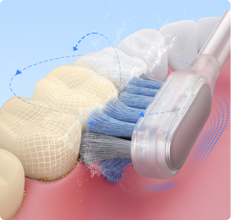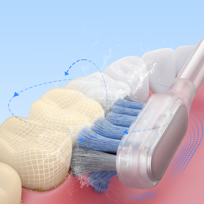 Galingas servo variklis leidžia Fresh pasiekti giliai esančius dantis, užtikrinant veiksmingą apnašų šalinimą ir kovą su maisto likučiais tarp dantų*.