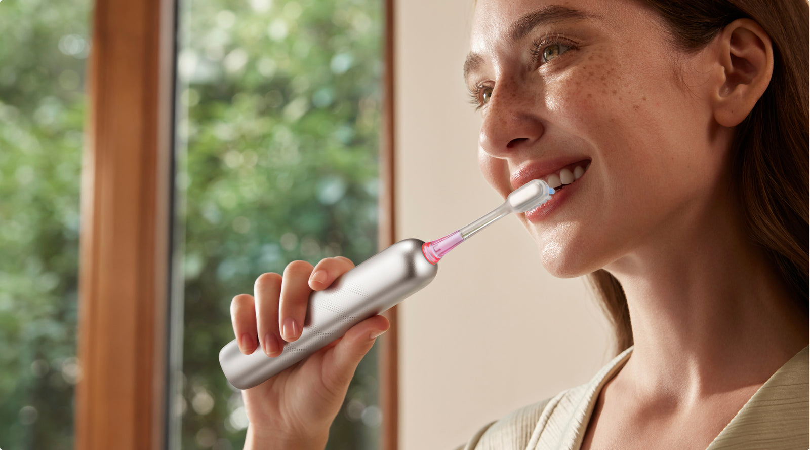 Nebereikia jaudintis dėl netyčinio dantų šepetėlio numetimo. Fresh serija yra atspari vandens purslams dėl pažangios nanodangos, kuri puikiai atstumia vandenį. Lenktos formos dizainas neleidžia kauptis vandeniui ir dėmėms, užtikrindamas optimalų veikimą drėgnoje aplinkoje.