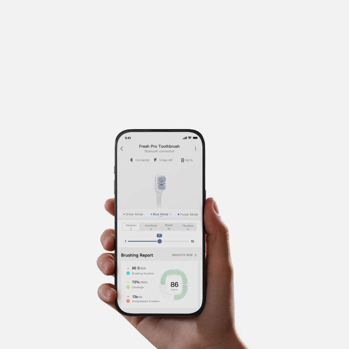 Susipažinkite su Fresh Pro – revoliuciniu elektriniu dantų šepetėliu, skirtu galingam ir universaliam valymui. Su pasaulyje pirmąja 3DClean™ technologija Fresh Pro sujungia garso vibraciją su tiksliu valymu aukštyn-žemyn ir kairėn-dešinėn, užtikrindamas gaivumą kiekvienu judesiu. Pasiekite kiekvieną dantį be pastangų – Fresh Pro valo už jus.