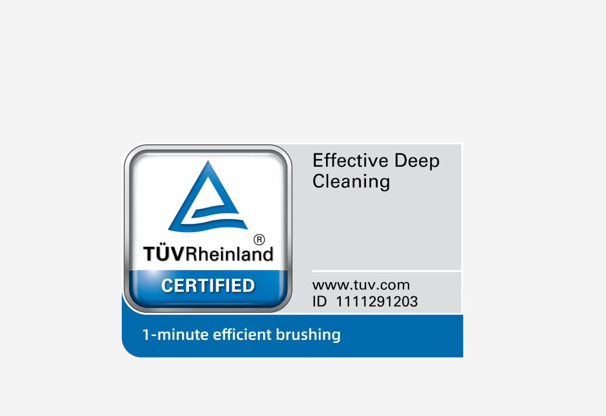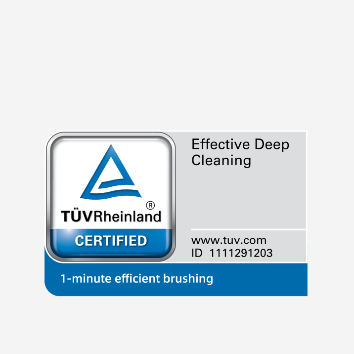 *Veiksmingas apnašų šalinimas ir maisto likučių tarp dantų šalinimas: Sertifikuota TÜV Rheinland.