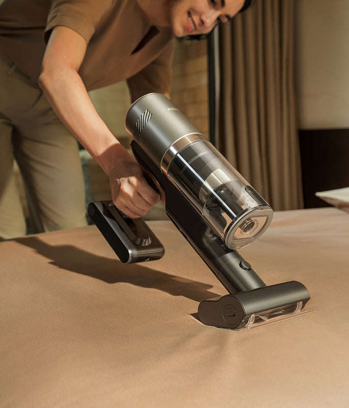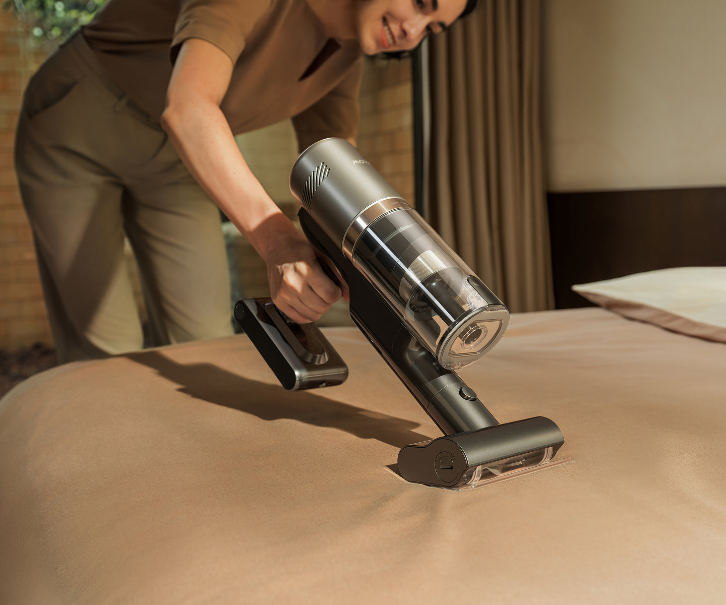 Be pastangų valdomas akumuliatorinis rankinis dulkių siurblys