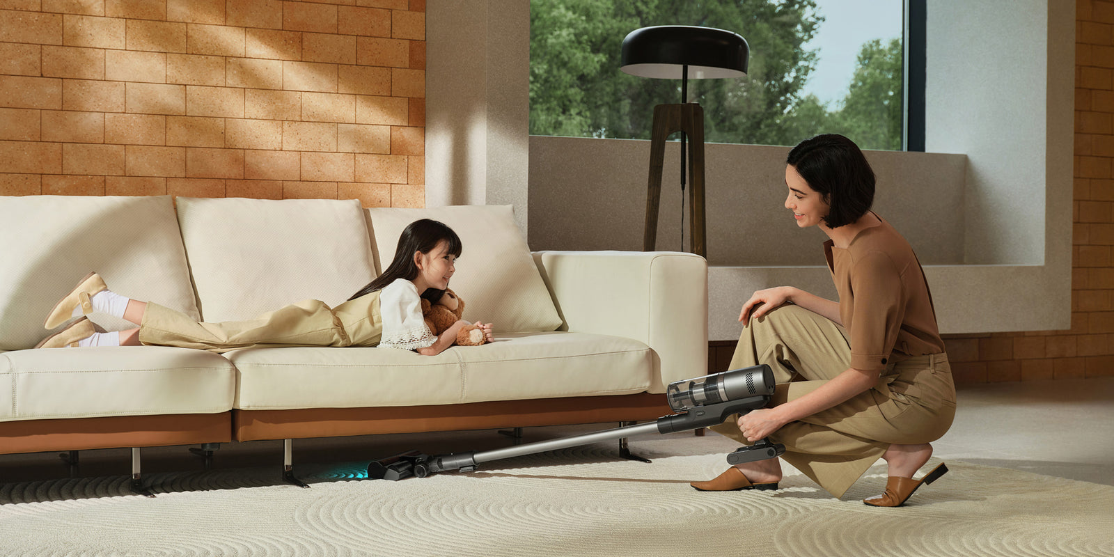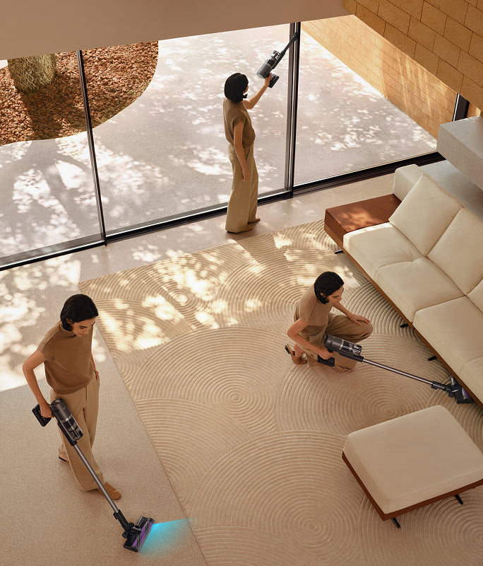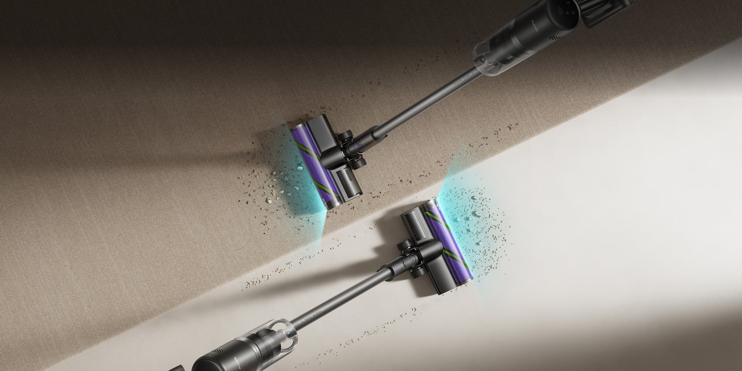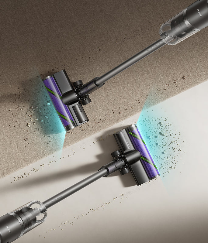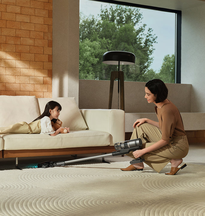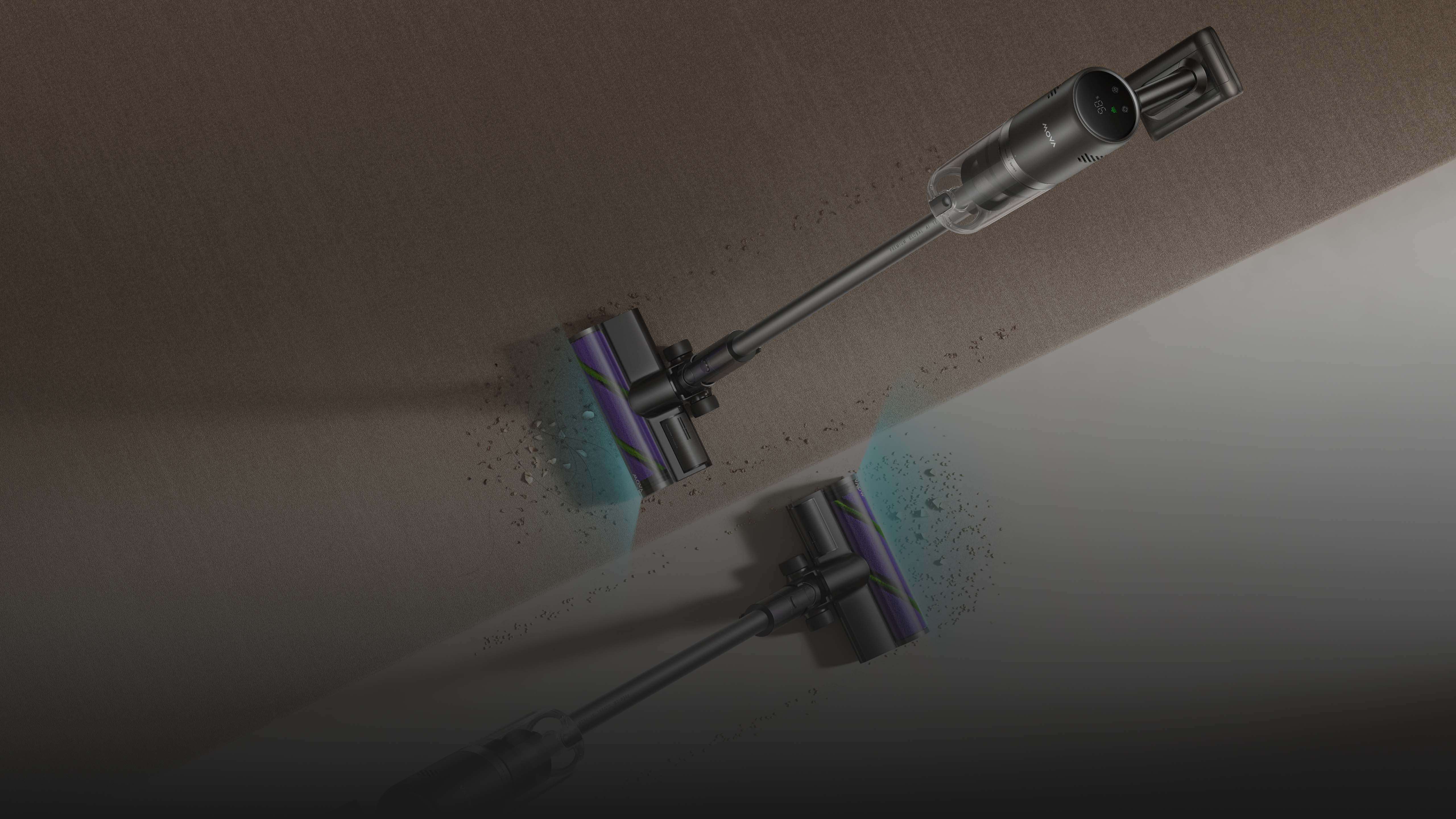 Maitinimas įjungiamas palietus LED ekraną. Būsite informuoti apie akumuliatoriaus veikimo laiką ir valymo režimą realiuoju laiku. Lengva sklandžiai perjungti „Eco“ ir „Turbo“ režimus.