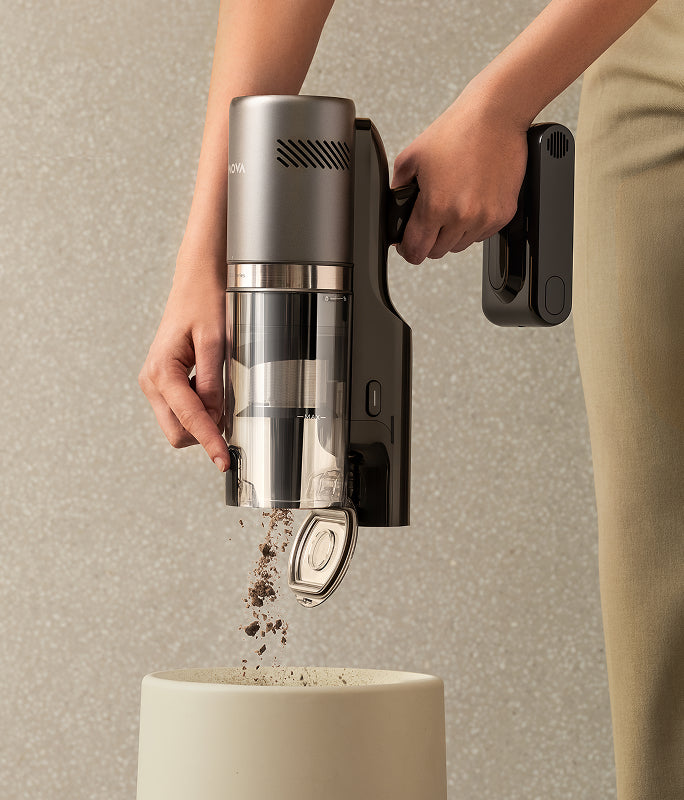 Vienu paspaudimu ištuštinama 0,3 l dulkių talpykla