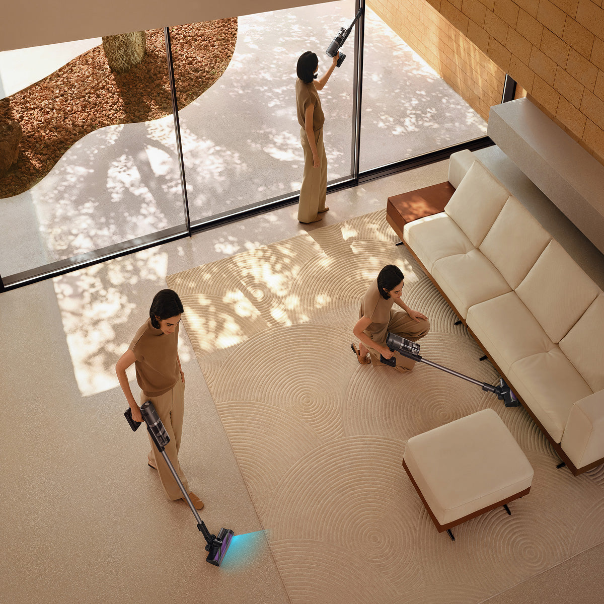 Pastatomą stovą patogu perkelti ir nereikia gręžti sienų laikikliams montuoti. Jis yra skirtas visiems priedams tvarkingai laikyti ir taip pat yra dulkių siurblio įkrovimo stotelė su įmontuota apsauga nuo per didelės įkrovos, kad prietaisas visuomet būtų įkrautas tai darant saugiai ir taupant energiją.