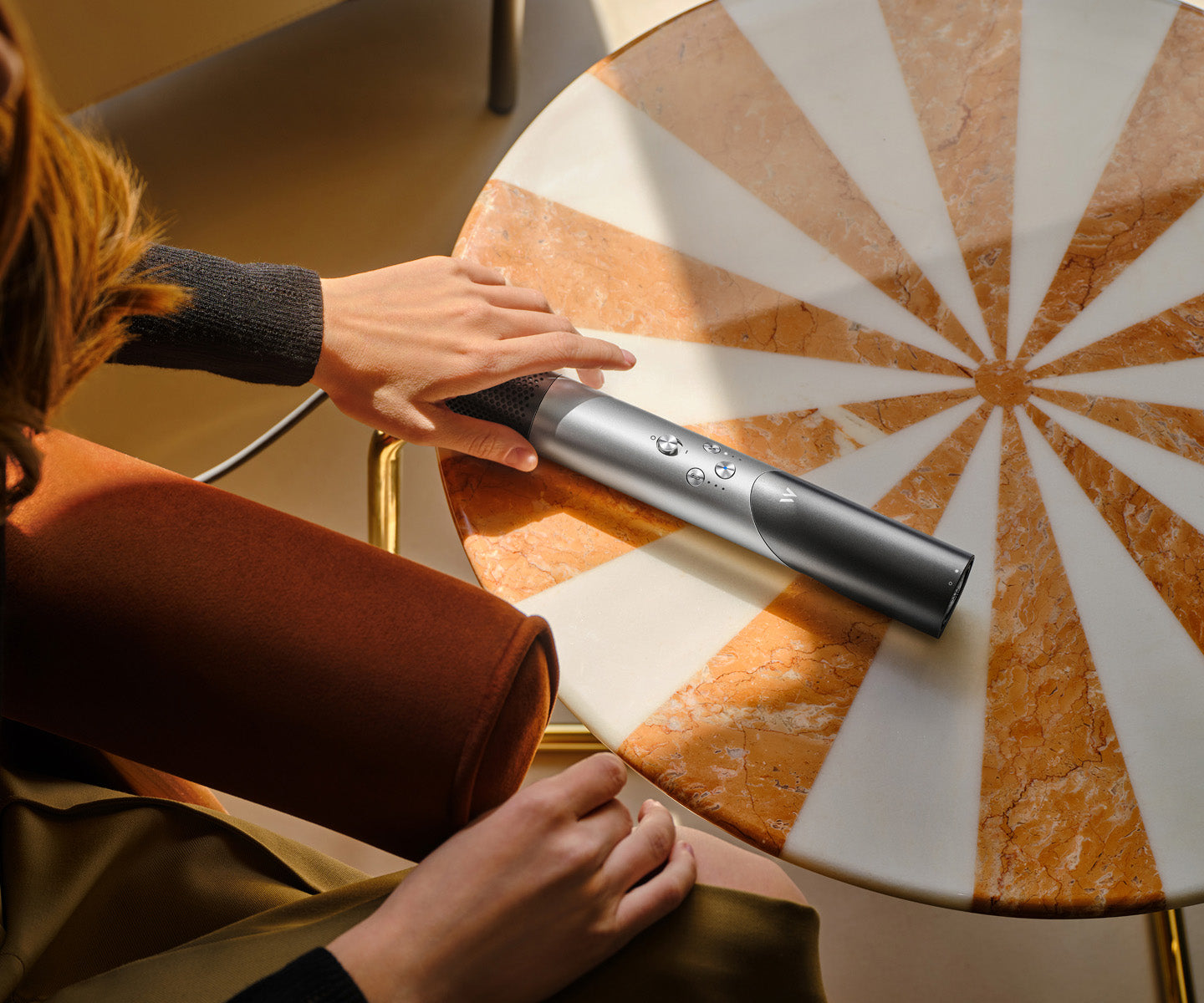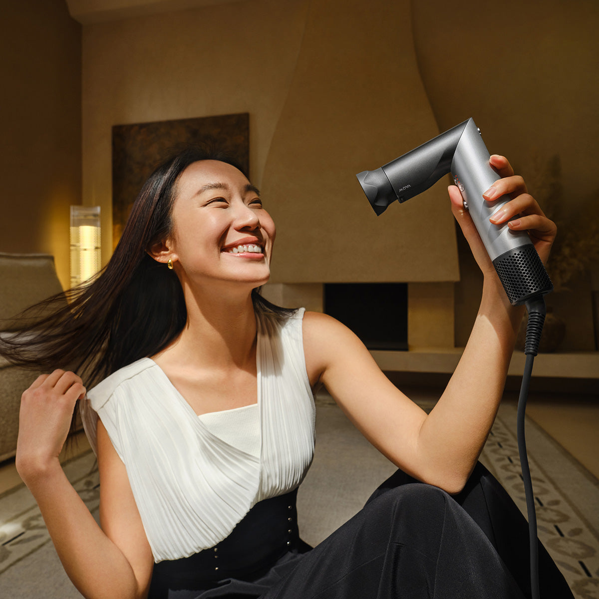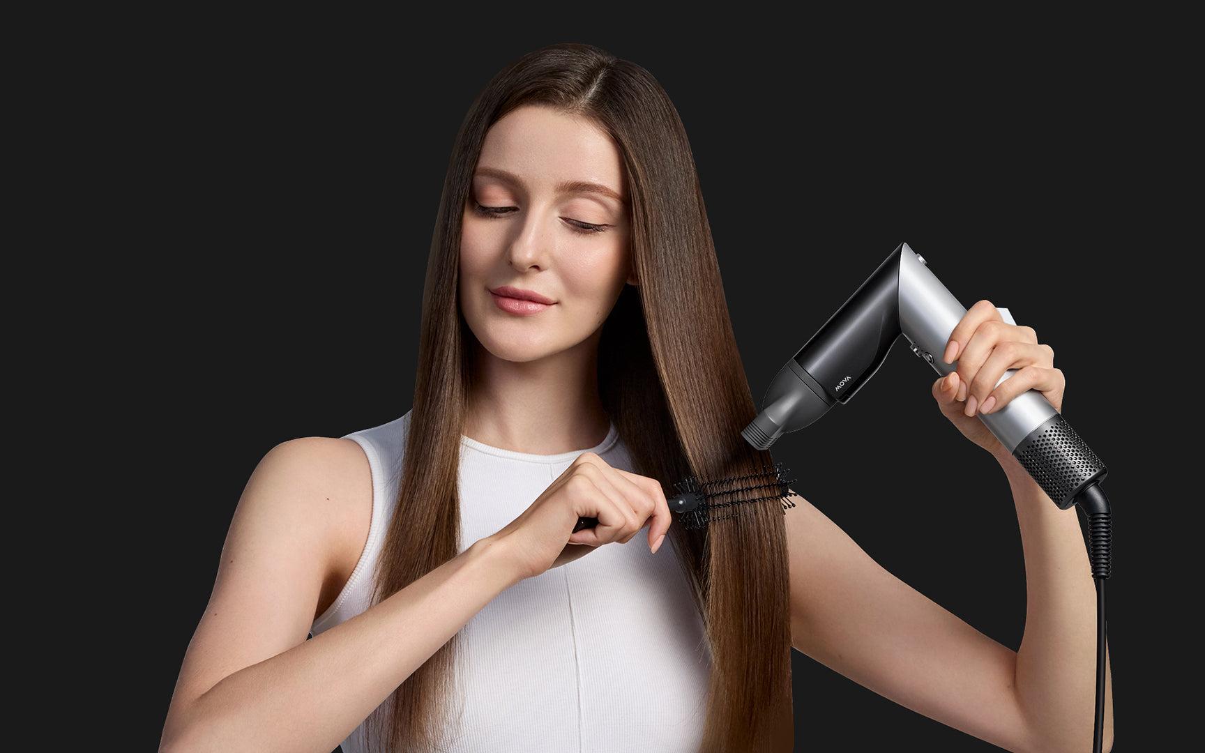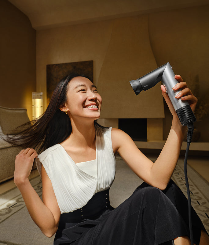 "Praskaidrinkite savo kasdienybę naudodami jus pažįstantį antgalį. Išmanusis antgalis automatiškai nustato idealų režimą atsižvelgdamas į daugumos naudotojų poreikius. Režimo atminties funkcija įsimena kiekvieno antgalio temperatūrą bei oro srautą ir kitą kartą prisitaiko prie jūsų pageidavimų – nereikia papildomai reguliuoti."