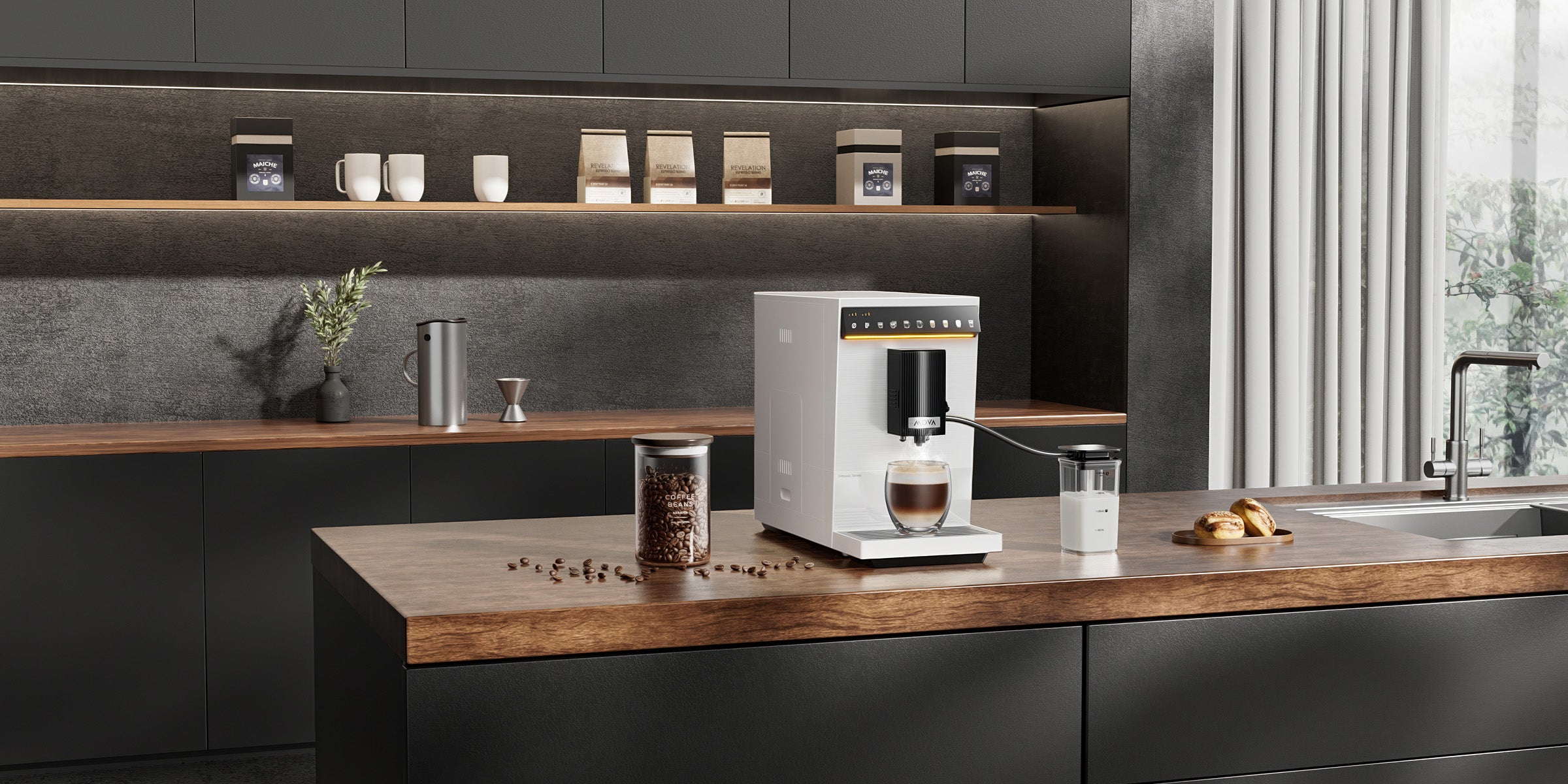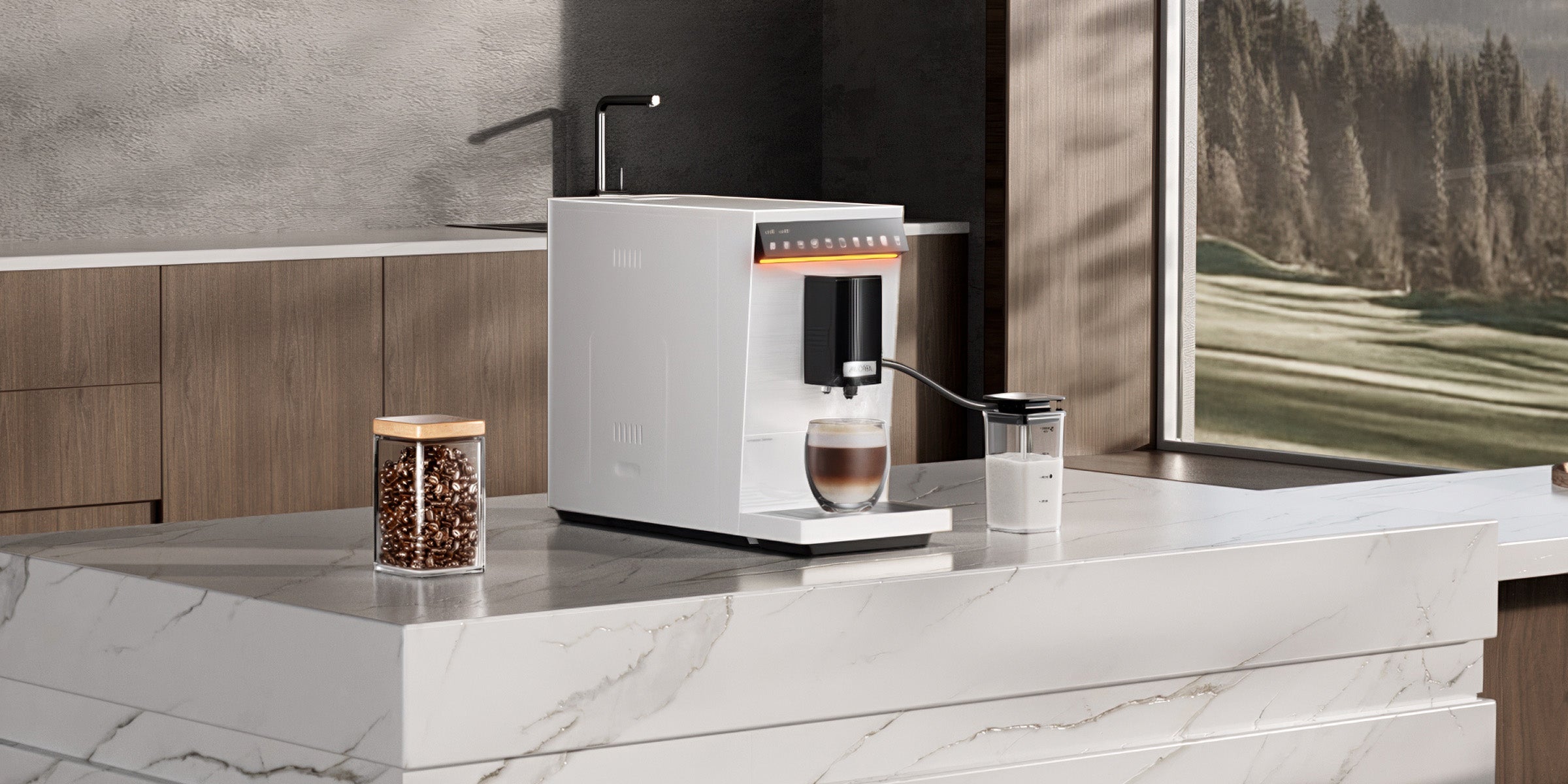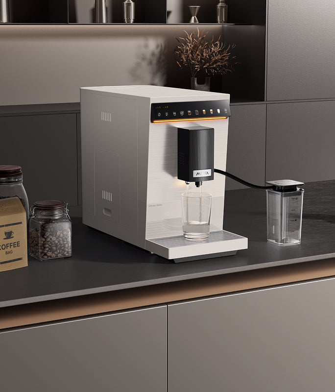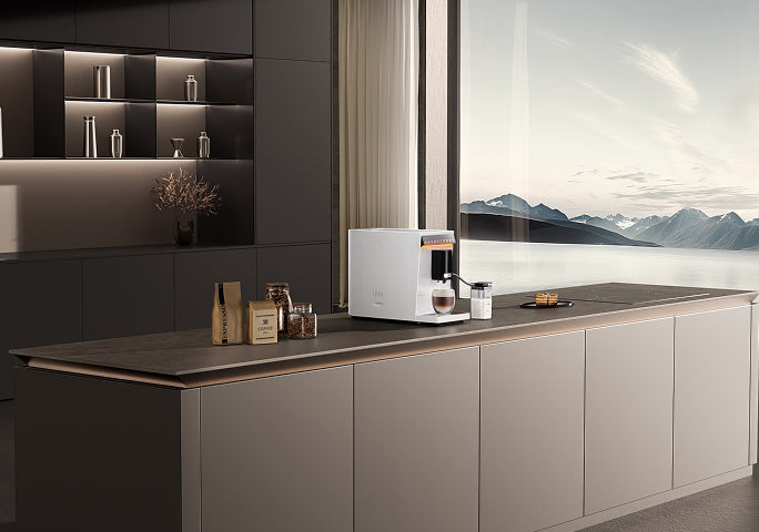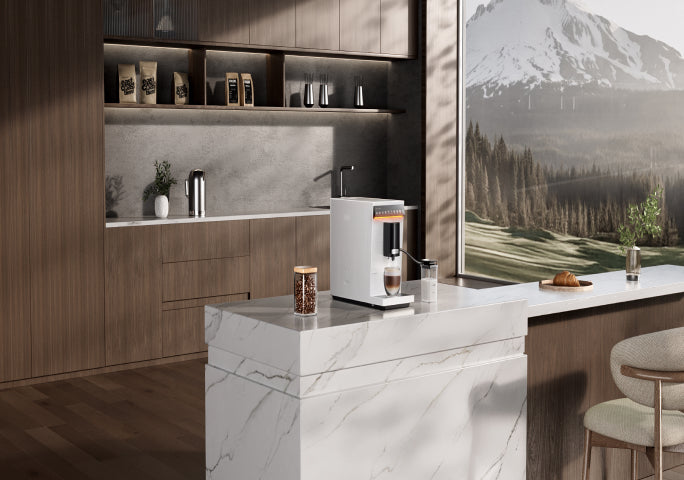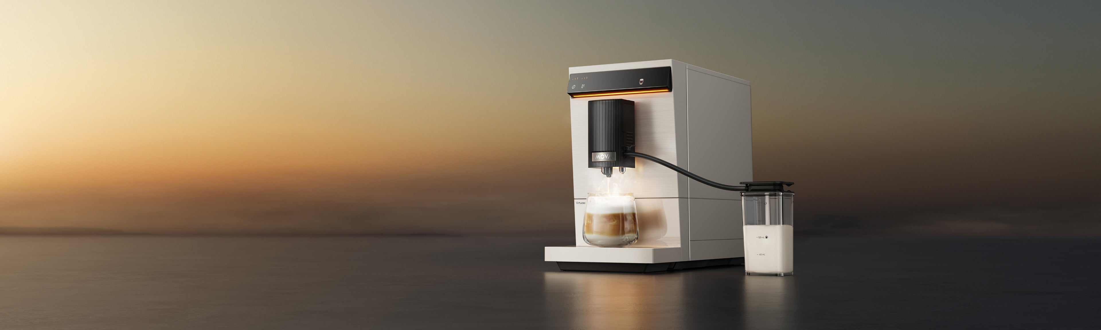 „Virtuoso 10 Pro“ harmoningai dera prie bet kokio stiliaus interjero – elegantiškos linijos, šlifuoto metalo apdaila ir subtilus, modernus apšvietimas ekrane paverčia kiekvieną erdvę stilingu kavos kampeliu.