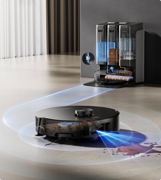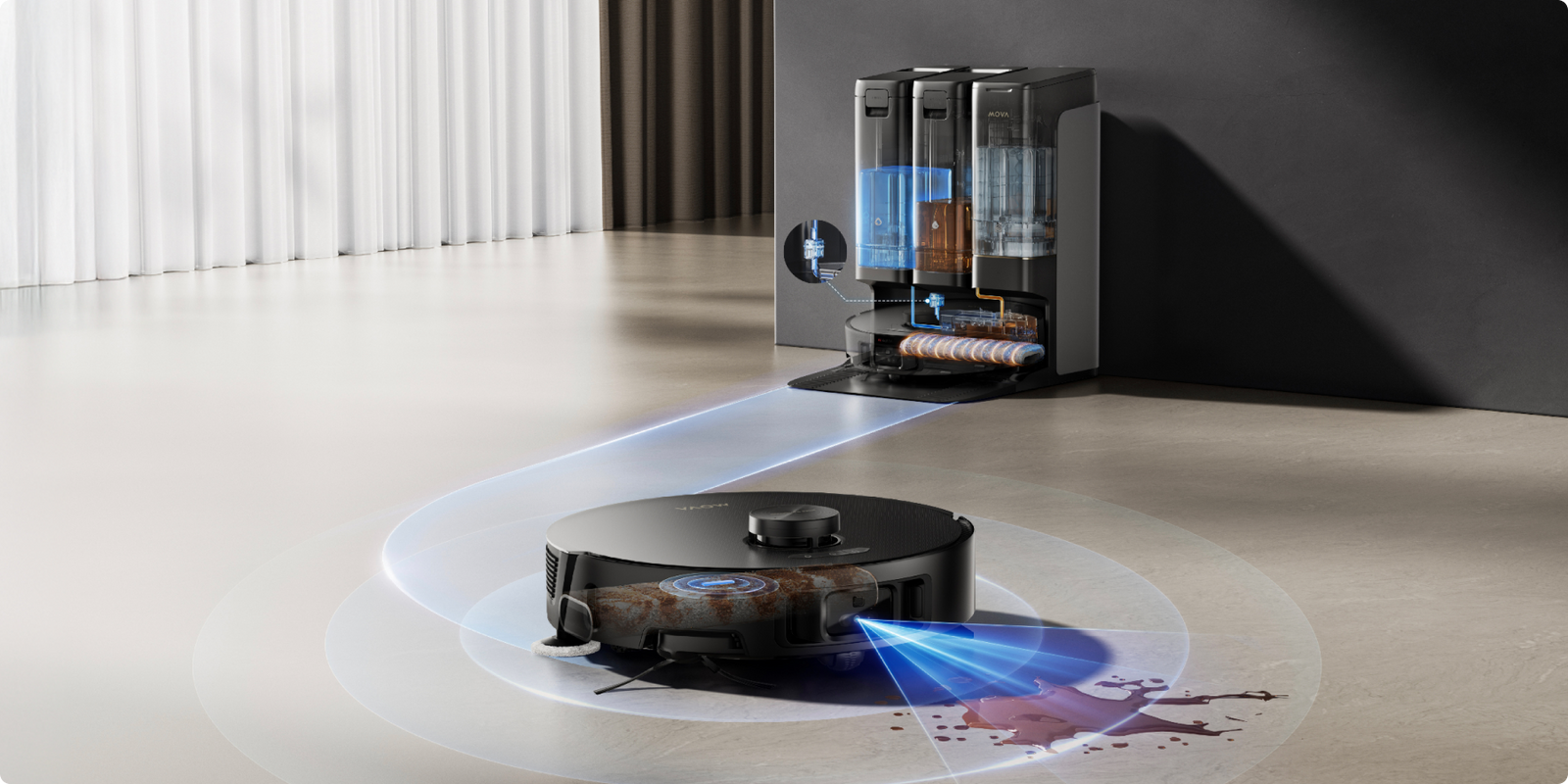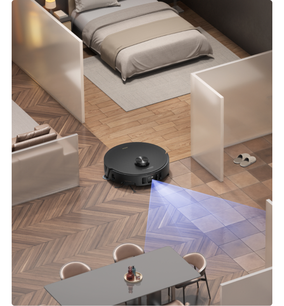 Įrengta autonominio vairavimo lygio LiDAR ir AI pagrįsta dvejyne vizija, sistema lengvai juda sudėtingoje namų aplinkoje, planuoja maršrutus, vengia kliūčių ir juda sklandžiai. Atpažįsta daugiau nei 160 kliūčių tipų*, įskaitant 100 % laidų aptikimą – saugiam ir efektyviam valymui.
