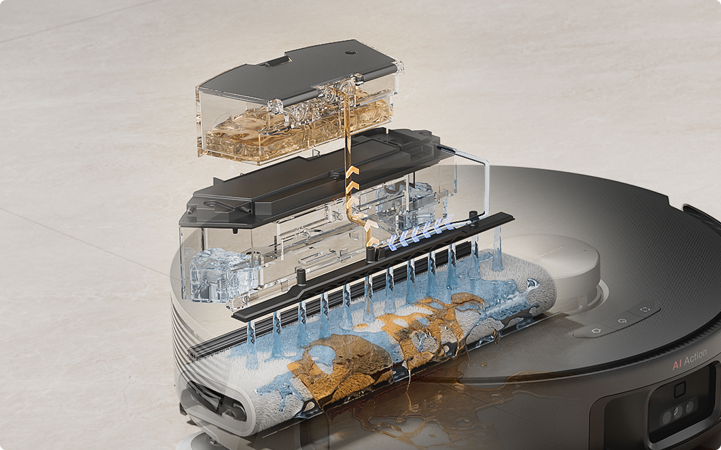 MOVA Z50 Ultra karšto vandens cirkuliacijos sprendimas valo išmaniau – karštas vanduo cirkuliuoja realiuoju laiku, palaikydamas švarią vikšrinę šluostę, o vientisa šluostės danga padengia didesnį plotą, užtikrindama giluminį valymą su mažesnėmis pastangomis.