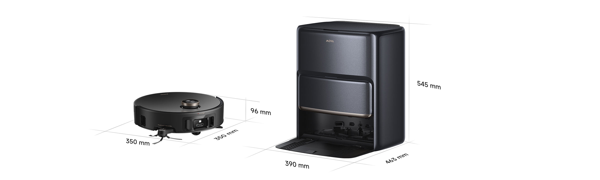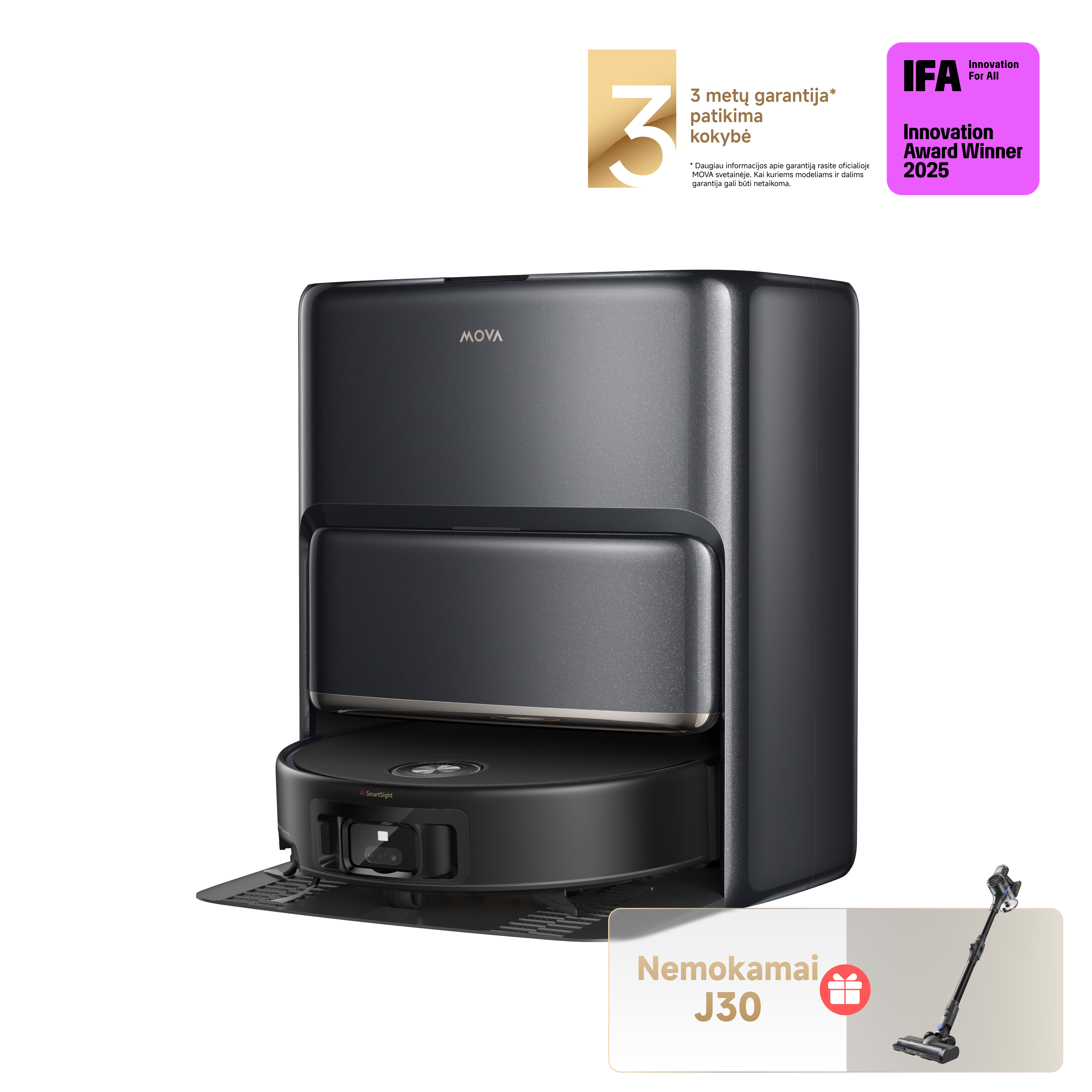 * Naujoviškai: reiškia palyginimą su ankstesnės kartos „MOVA“ robotų dulkių siurblių modeliais.